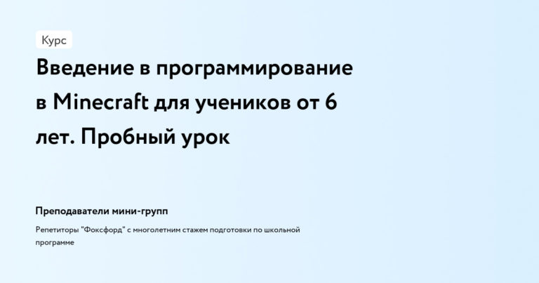 Введение в программирование в Minecraft для учеников от 6 лет. Пробный урок