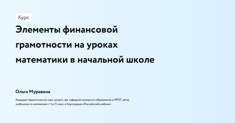 Элементы финансовой грамотности на уроках математики в начальной школе