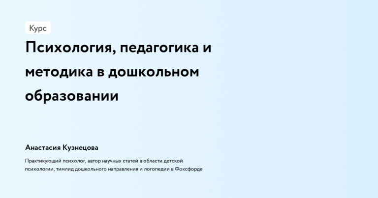 Психология, педагогика и методика в дошкольном образовании